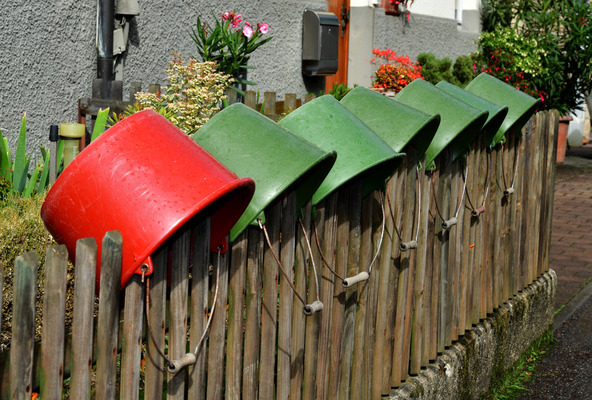 Die Leseeimer hängen zum trockenen auf dem Gartenzaun. Danach beginnt die eigentliche Arbeit des Kellermeisters.