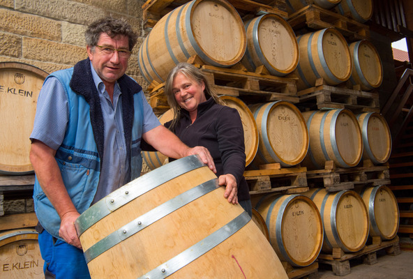 Eberhard und Karin Klein: Die neuen Eichenfässer stehen bereit.